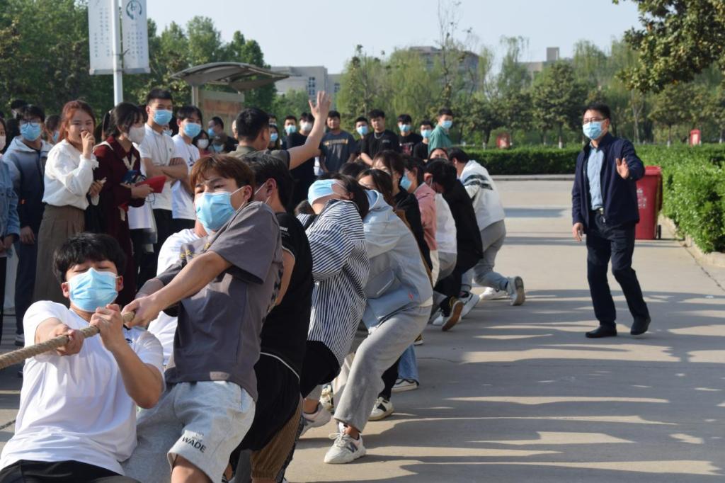 为常态化地贯彻落实团中央、教育部、国家体育总局、全国学联《关于开展大学生“走下网络、走出宿舍、走向操场”主题群众性课外体育锻炼活动的通知》的有关要求,引导和帮助大学生培养良好的体育锻炼习惯,提升身体素质、磨练坚强意志,缓解疫情期间焦虑情绪,营造健康向上校园文化氛围,4月19日,检察系举行了“走下网络、走出宿舍、走向操场”三走系列活动启动仪式,并举办了“三走”系列活动的第一站:拔河比赛。