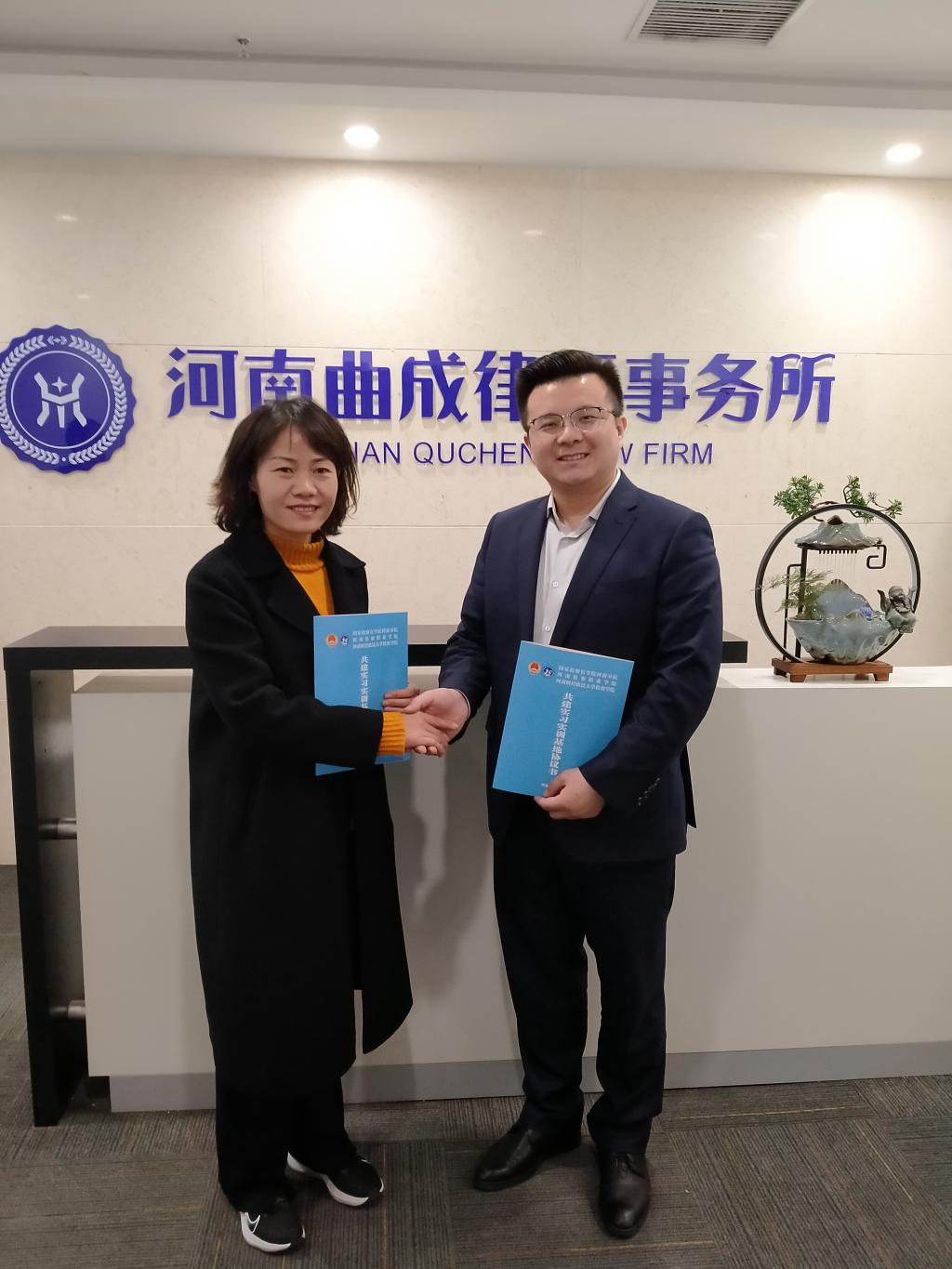 九游体育官方网站·河南曲成律师事务所实习实训基地的建立,为九游体育官网开拓校外实习实训基地又增添了一支新的生力军,更为九游体育官网学生提供了一个丰富实践经验、培养创新精神的机会。相信合作双方将会进一步探索合作方式,加强交流,充分发挥实习实训基地的作用,共同促进检察教育事业和律师工作的稳步发展。
