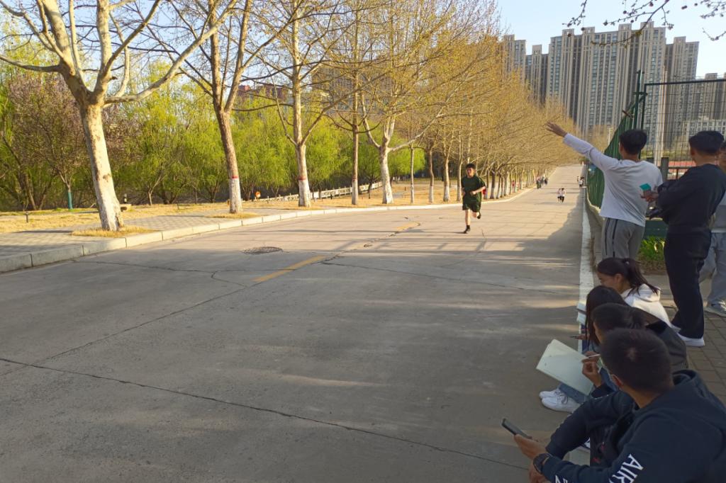 本次长跑比赛分为男子4千米和女子3千米两个赛项。赛前,团学干部们在跑道沿途设置补给点,细心检查跑道情况,核实参赛人数,提醒大家注意事项,而参赛选手们则互相加油打气,蹦跳热身,蓄势待发。